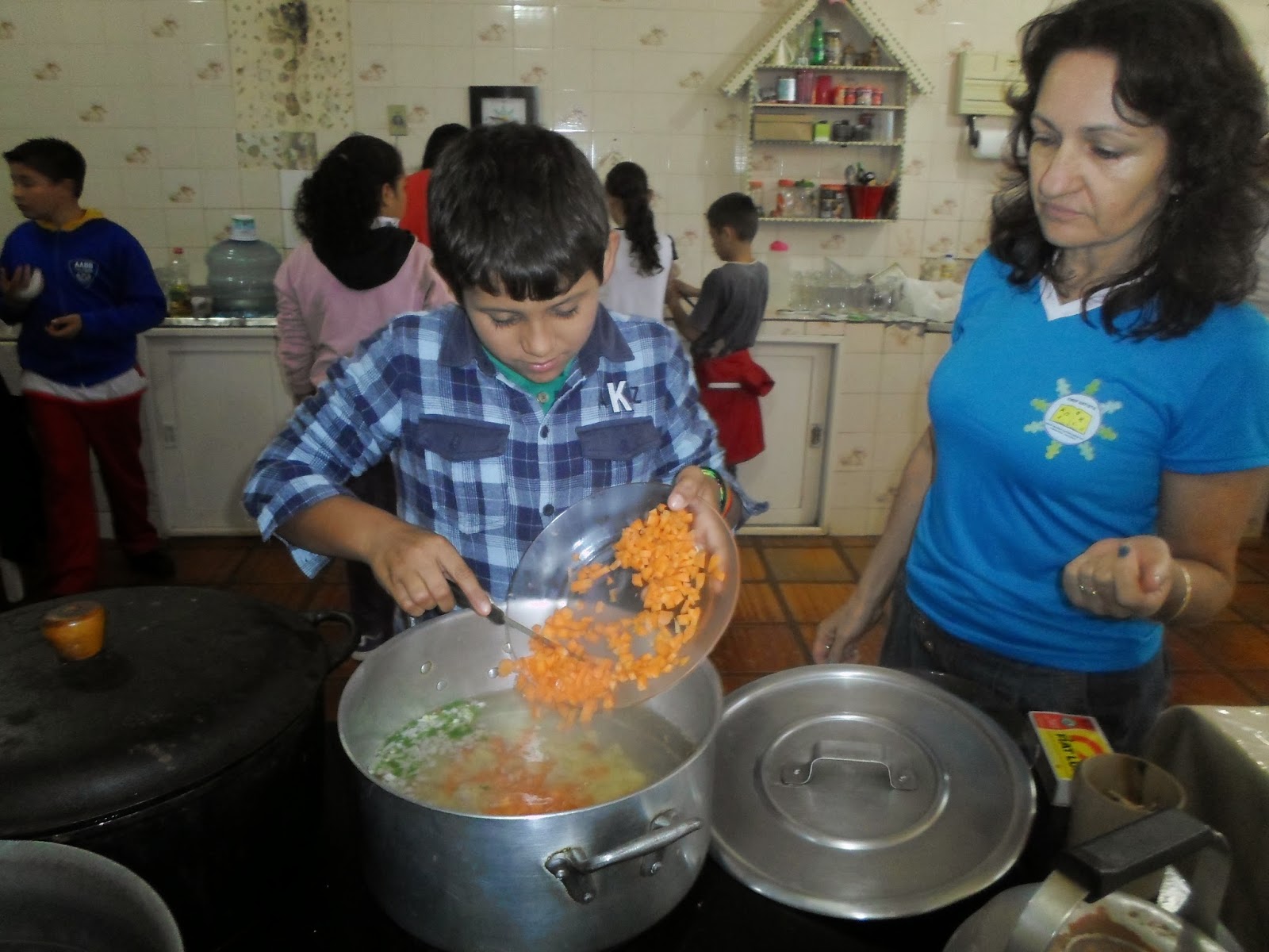 fruta, sopa de legumes, atividades físicas, vídeos e jogos sobre alimentação e